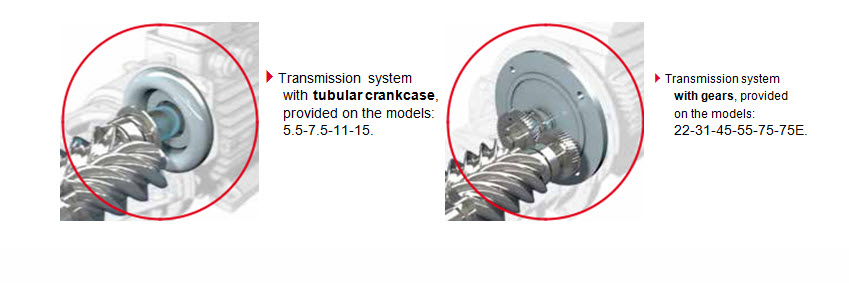 Đối với máy nén công suất đến 15 kW, việc truyền công suất mà không bị tổn thất có thể mang lại lợi thế 4% so với máy nén truyền động bằng dây đai thông thường, nhờ động cơ đặc biệt của nó với một cacte hình ống và không có ổ trục phía trước.